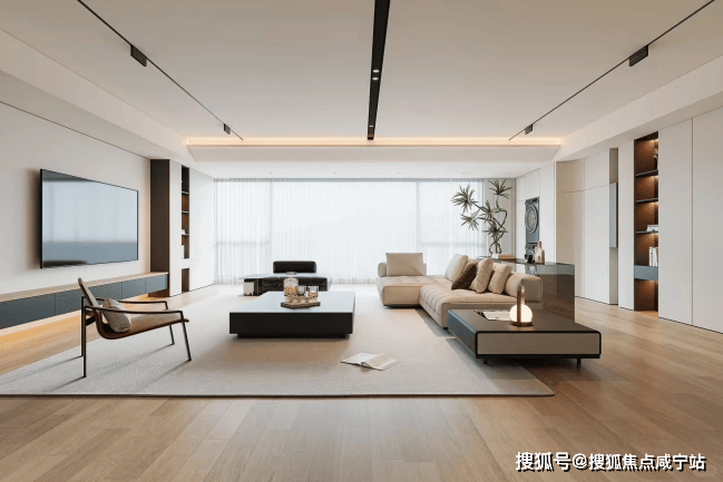 端户约5.6米大尺度瞰景客厅,坐拥180°广角观景体验,引地块水系公园与社区内景入室,恰如身处人与自然的“观礼台”。