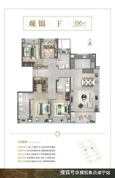 南向3.5面宽边厅的户型设计,一梯一户的电梯厅基本可以独享;客餐厅一体化设计,270°的超广视角,居住者足不出户就能坐拥长卷式观景体验;南向双套卧设置,实现精致而又尊奢的世家生活风范。