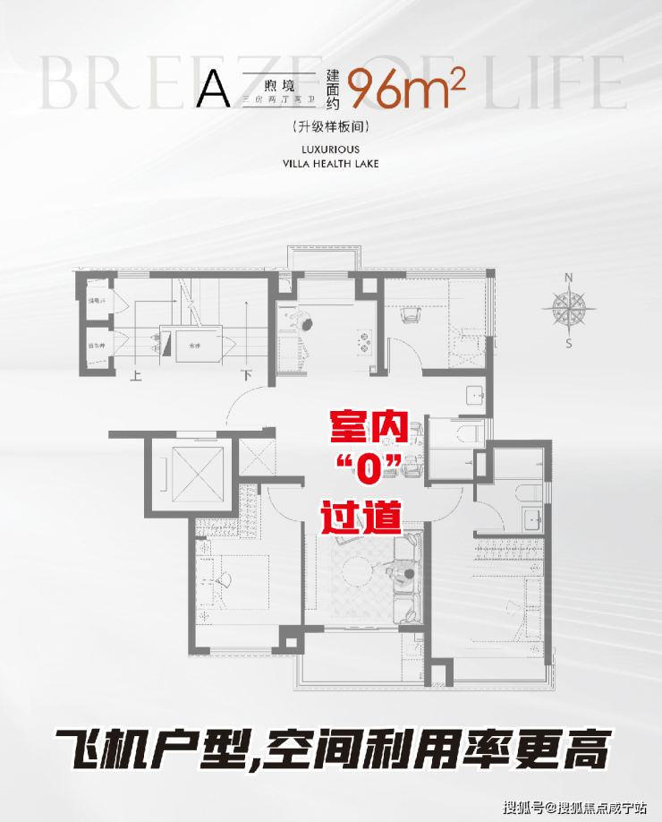 ② 墅境洋房:96-122 ㎡四房,层层退台设计,得房率 82-85%,非封闭阳台+无连廊,500-560 万即可入住墅区。
