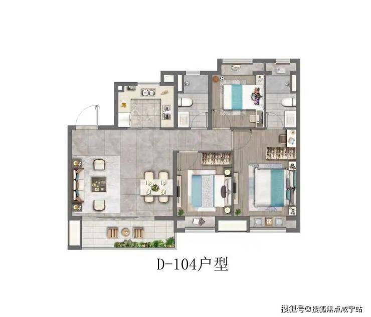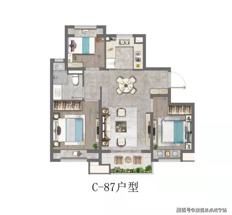 两间卧室分别位居于客厅两侧,私密性更佳;