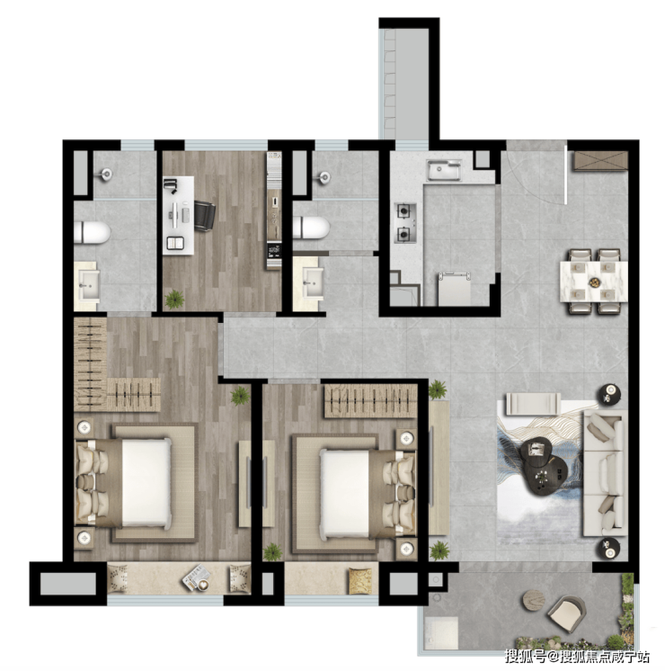 对于 “二胎家庭” 来说,115㎡的四居室是理想选择。四开间朝南的设计让两个孩子的房间都能享受阳光,客厅连接 4.2 米宽的阳台,足够放置儿童游乐设施,让孩子在家也能尽情玩耍。社区内的儿童乐园和周边的亭林公园,为孩子提供了充足的户外活动空间,有利于身心健康发展。