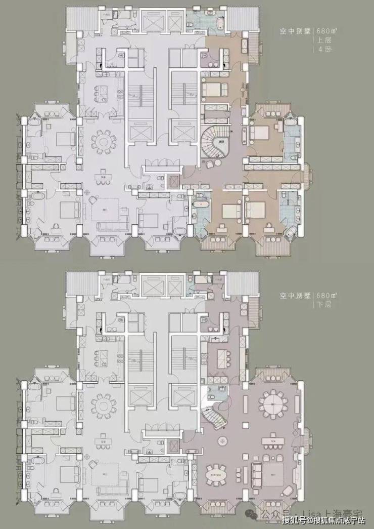 3号楼单元建筑面积:约600㎡—1220㎡住宅部分全部大平层(复式)设计.