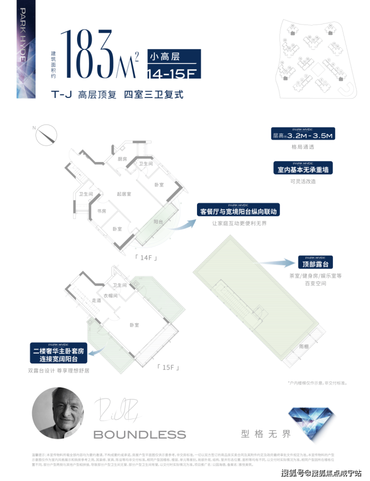 从伦敦到纽约,再到上海,那些被评为传奇的房子都处于顶楼。9号线地铁旁,公园海德理想顶复,惊艳上海楼市!作为罗杰斯大师作品,无承重墙设计,约3.2m-3.5m超高层高,格局通透,实景准现房,高端泳池会所等,仅40席,太难得,趁早入!