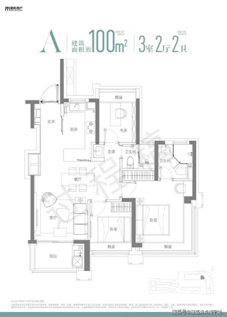 项目由高层和风貌别墅组成,高层产品建面约100㎡,风貌别墅约190-220㎡。高层产品: