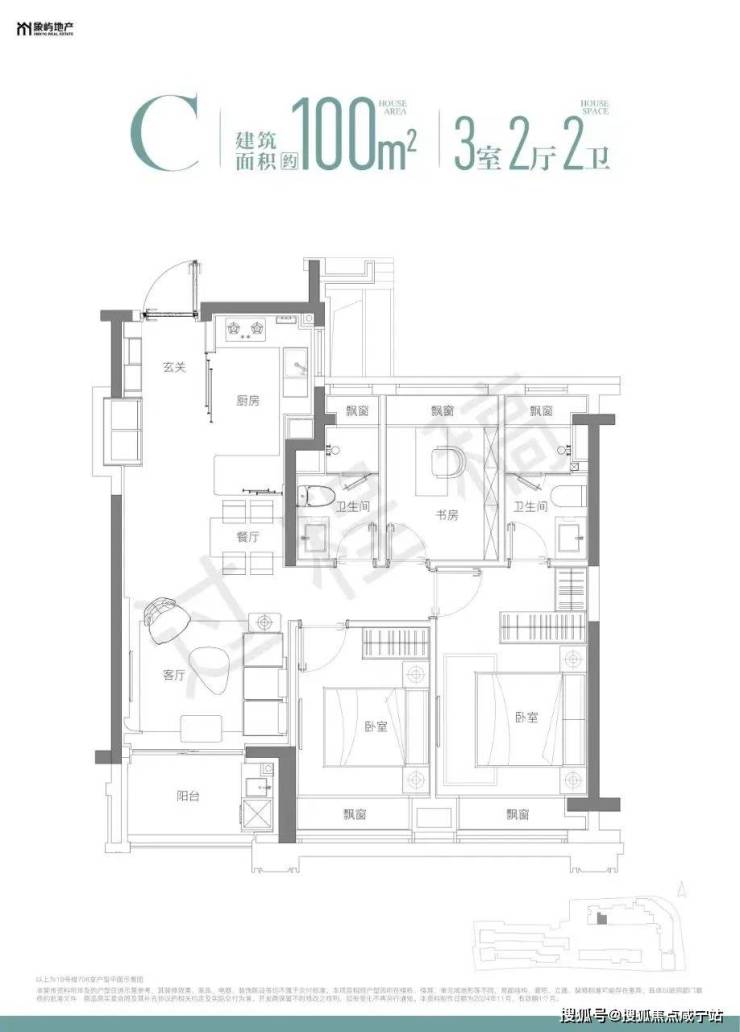 建面约100㎡高层3房共132套建面约190-220㎡风貌别墅共16套