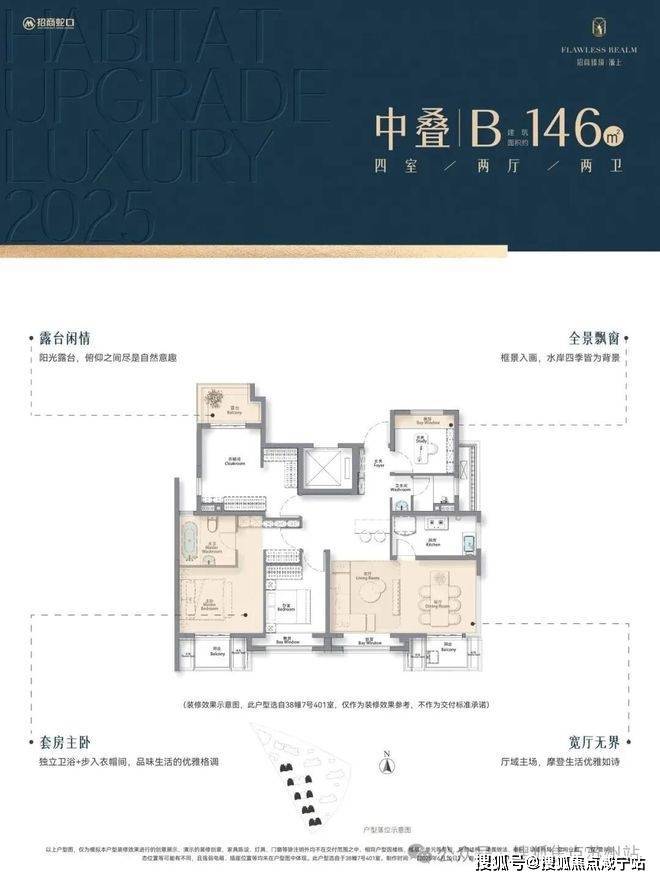 此外,项目还推出了建面约146-152㎡滨水叠加,同样进行了空间革新,户型图如下↓