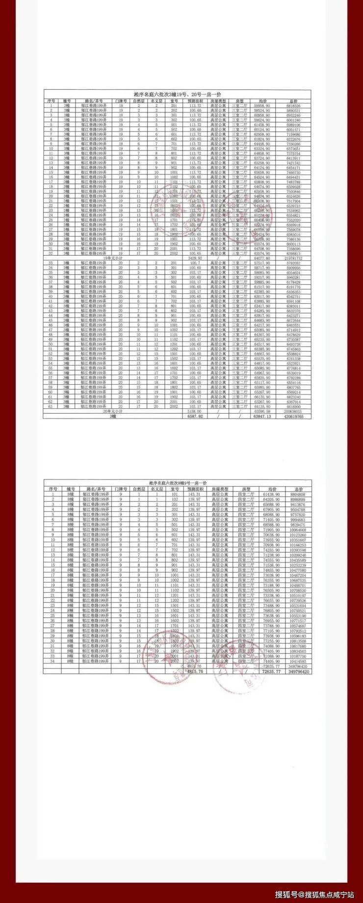 上期一房一价表如下: