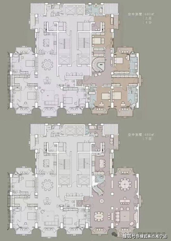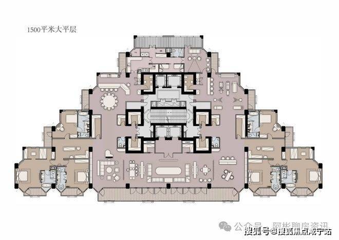 最豪气的还是这个整层一户建面约1500㎡的大平层户型。它南向面宽达60米,有14个阳台!