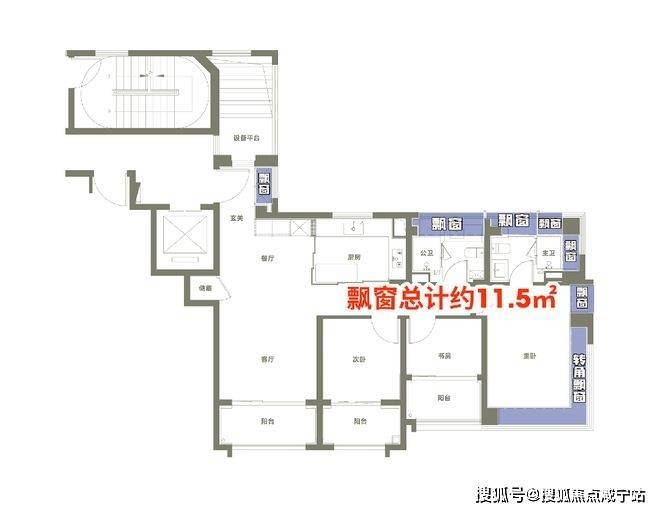 三阳台合计面积约15㎡,拓展后两个次卧尺度更舒适,做到三间真正好用的卧室;部分户型连接设备平台,可作晾晒、收纳、园艺等多功能空间;全屋应飘尽飘,主卧配备270°超大转角飘窗+主卫多角度飘窗,飘窗赠送约11.5㎡。