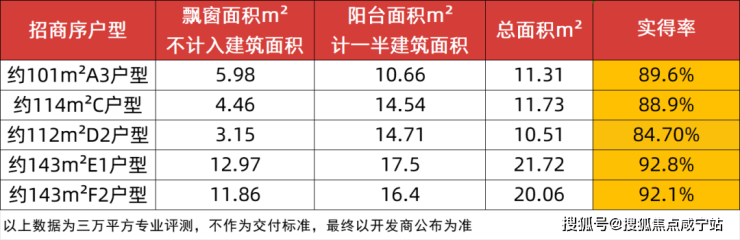 市面上常规高层的百平三房,我们按常规约75%得房率来计算,在计入飘窗和一半阳台的情况下,实得率,也很难突破85%!
