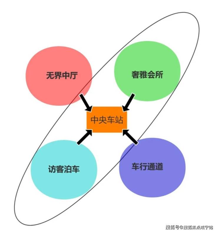 在招商序,车库不仅精装交付,还提出了“中央车站”的概念,通过动线的巧妙设置,让车库连通了访客泊车、会所、中厅、车行通道等各个空间。