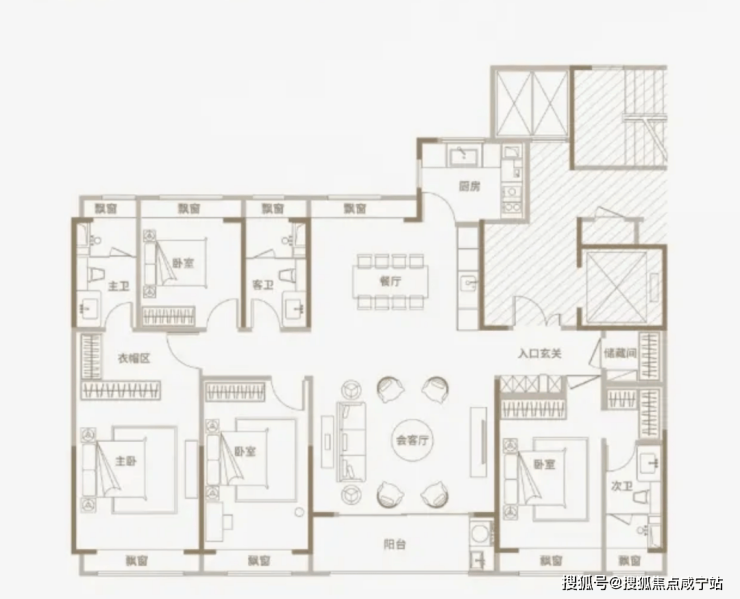 要知道,现在市面上的主流做法,是把三房的各个功能空间,都做飘窗设计,以得到更开阔的景观视野,并增加实际面积使用率。