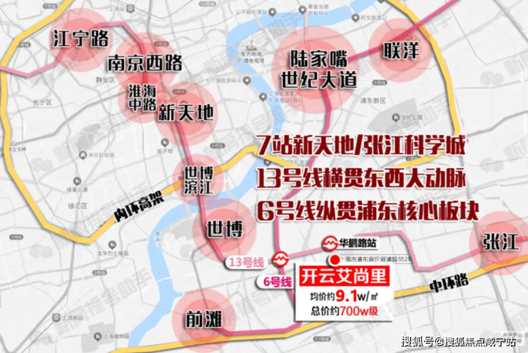 项目临近轨交13号线华鹏路站,7站直达新天地、6站直达张江科学城,13号线是横向大动脉,业主进站直达浦西新天地、淮海路及南京西路等重点商圈;一站换乘6号线,作为浦东纵向大动脉,链接前滩和世纪大道!