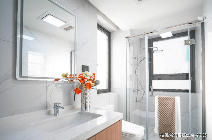 卫生间明亮通透,选用的花洒、水龙头、马桶、台盆浴室物件,臻选唯宝或同档次品牌,大牌精装提升生活质感。
