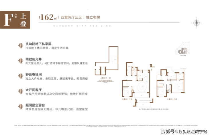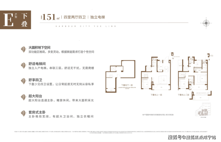 叠墅面积段约151-162㎡上下叠户型,有电梯独立入户、卧室多套房设计、超高地下室空间、超大横厅等亮点,灵活的多变空间,让生活体验更加美好。