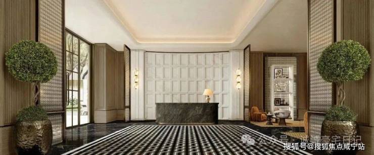 社区主入口更是兼具豪华酒店与海派元素设计风格,挑高约6米的入户大堂、水系景观与艺术家共创作品交相辉映,奢华感和高级感拉满!