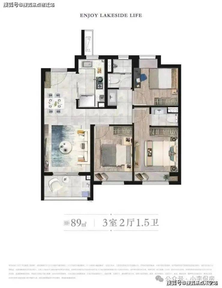 户型上,建面约89㎡做到了罕见“3房1.5卫”,要知道同样的面积段,市面上的新房基本都只有一个卫生间,实用性无法相提并论。家人从此再也不必早起时为抢厕所而烦恼。同时三开间朝南、三卧飘窗、次卫干湿分离、主卧套房都是标配,实用性非常之高。