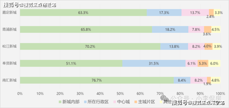 而在五大新城中,松江新城的内部就业比重高达70.2%(数据来源:规划上海SUPDRI公众号),在五大新城中处于领先地位。