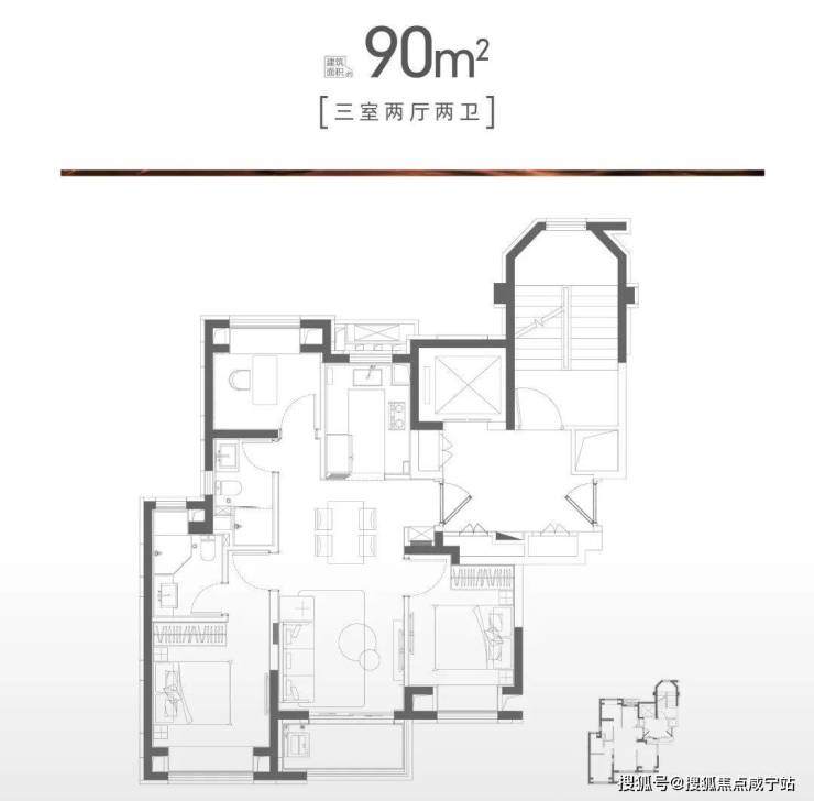 90㎡三房:三口之家优选,南向双卧+灵活书房;