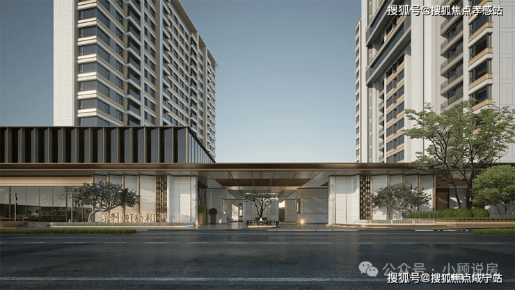 归家仪式上:社区拥有约100米超长沿街酒店式落客礼仪大门,臻选贝金米黄石材打造,历久弥新,豪宅级的归家仪式感由此拉开。
