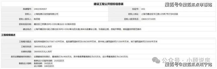 公示发布后不久,上海市建设工程交易服务中心随即发布了该地块的建设工程公开招标信息。