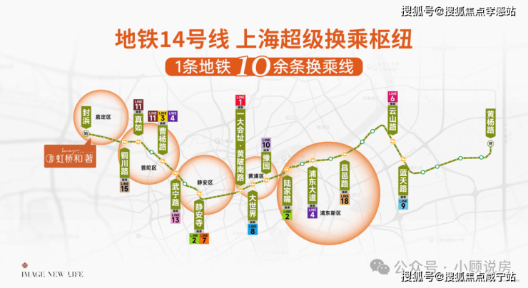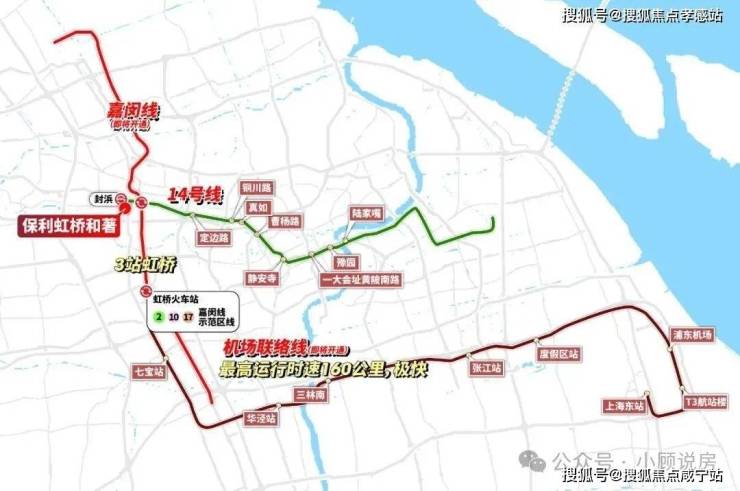 轨交方面,「保利·虹桥和著」售楼处营销中心☎:400-8800-703💹💹地块与地铁14号线终点站封浜站的直线距离不到500米,坐一站到乐秀路,未来可以换乘嘉闵线(在建),连接大虹桥、七宝、春申等板块。