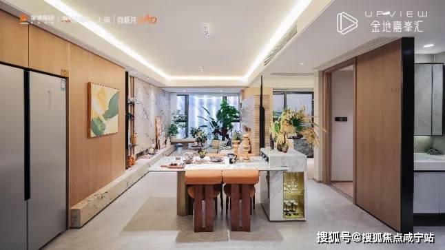 「金地嘉峯汇」售楼处电话: 400-960-1656 厨房移门采用大板砖厨房墙体、硅酸钙板厨房吊顶,定制金属移门+瓦楞玻璃,可根据需求自行开合,不仅引入更多光线,更增强了互动性!