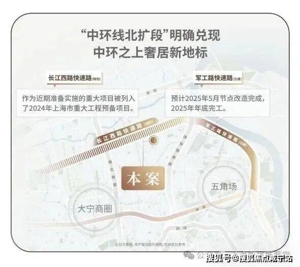 中环线北扩段明确兑现,军工路快速路25年开工,长江西路快速路列入上海市重大工程清单预备项目,快速链通城心, 随着中环线北扩段的政策明确,淞南将正式进入中环时间。未来经逸仙高架,进入南北高架、内环高架、中环高架,可快速链通南北上海;多维立体路网全面升级,未来区域价值再攀新高。