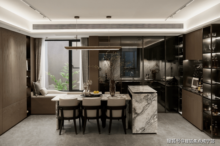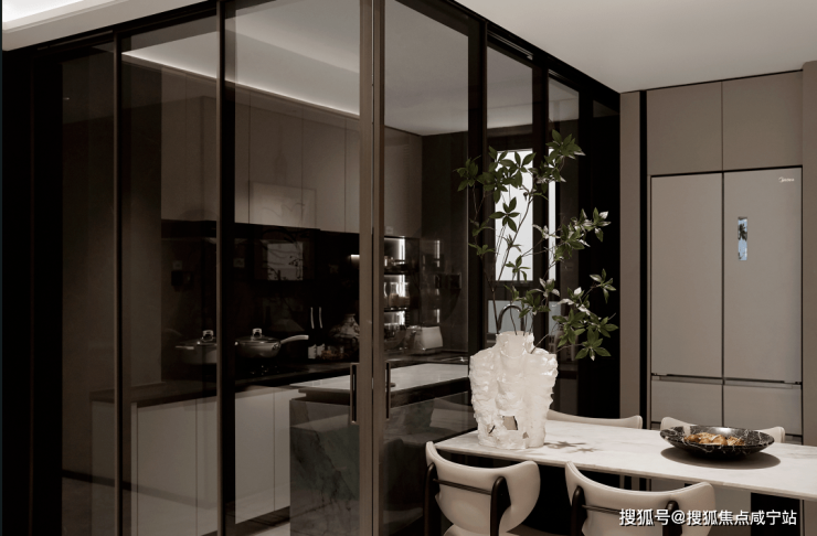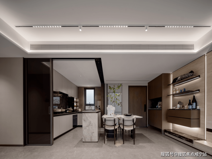 「龙湖·青云阙售楼处电话:400-8800-703」更重要的是,厨房通过上滑道吊柜金属移门的巧妙设计,不但更加方便清洁,而且可以让厨房在开放和封闭之间自由切换,使得空间感更大。