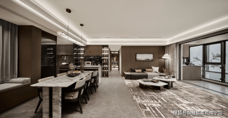 厨房空间获得非常大的延伸,可以打造出开放式中西双厨和岛台。