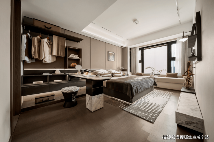 主卧套房预留步入式独立衣帽间,面宽长达约3.45米,尺度奢华,明亮通透。