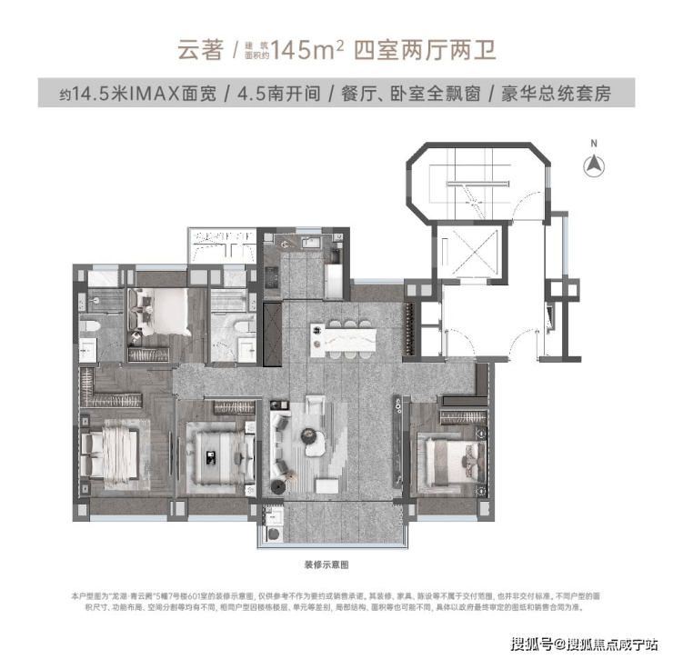 建筑面积约145㎡的4房户型,本盘最后48套,完全可以满足高端改善的置业需求。