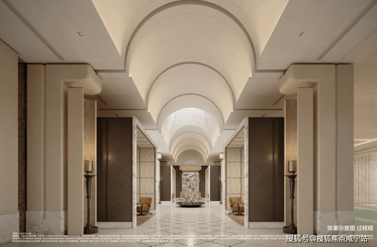 这些效果图未来会在实景示范区呈现,但就现在,你已经可以在项目搭建的售楼处里,看到一个稍微缩小一些版本的公区效果了。