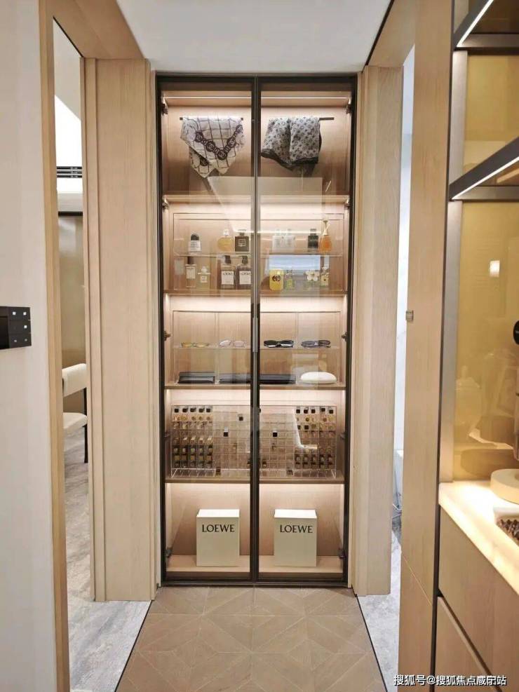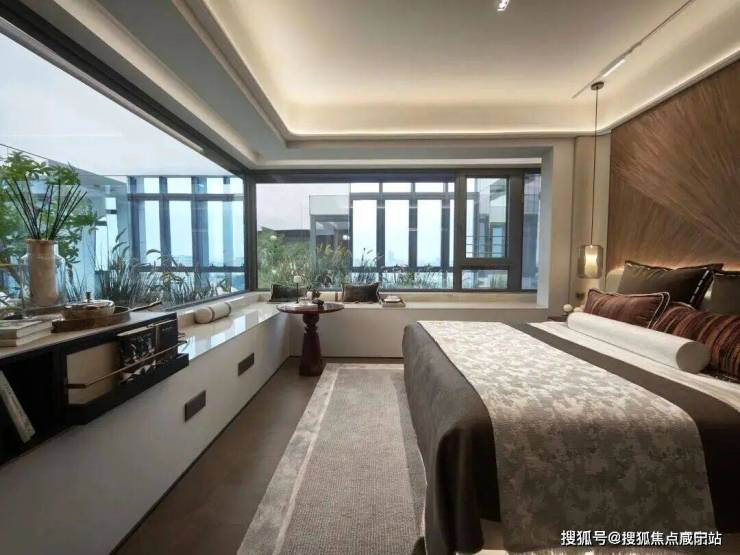 最后来看泳池。云邸玖章做了再升级。改为采用大尺度的落地玻璃拼接,约2.4米宽巨幅玻璃,且通过精致的玻璃交接细节处理增进室内外空间的融合,强调泳池的无界感,真正实现了无边泳池的效果、质的飞跃。