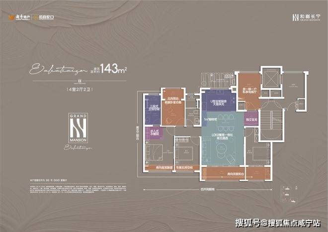 建面约143㎡的4房户型,类一梯一户的设计,每一户都有一个面积约8㎡的独立采光电梯厅空间;四开间朝南+大宽厅,采光效果爆棚;通过LDKB一体化设计,形成一个近50㎡的客餐厅空间,极大提升空间场景的可能性;卧室也采用了酒店化套房设计,主卧贯穿南北套房设计,南北皆有飘窗。