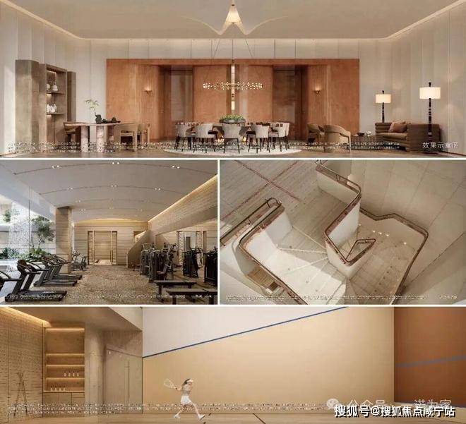 艺术旋转楼梯、地下光厅、区域首创国标壁球馆、飞瀑园景健身房、嵌入式景观书吧等,深度还原度假酒店质感