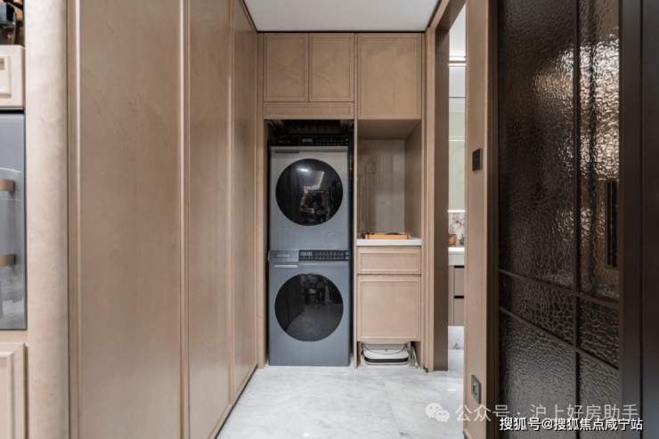 收纳升级:长约3.4米的整墙收纳柜+玄关收纳柜、家政柜配置单独洗涤盆等升级收纳配置!