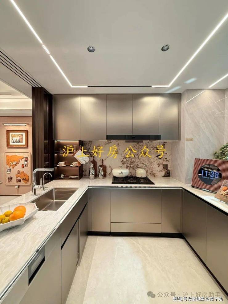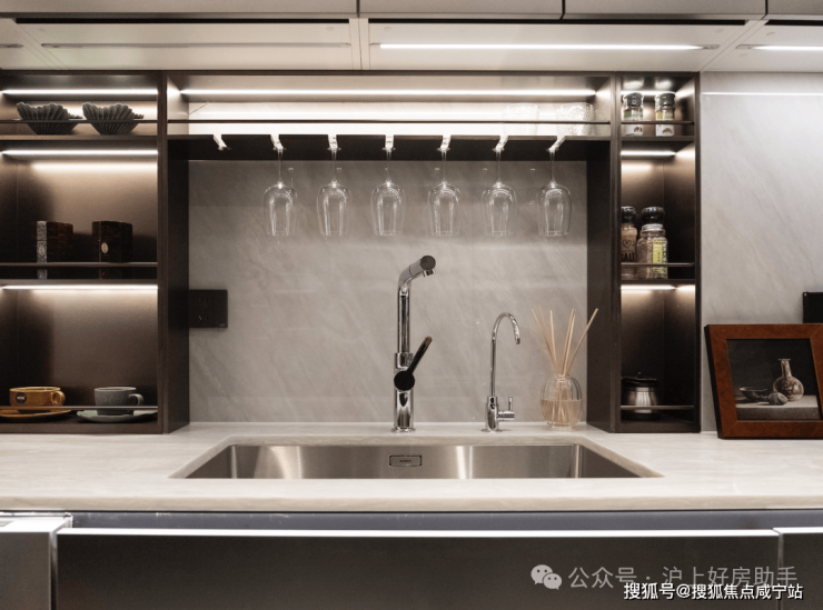 2 、 装标在线:开放式厨房配置嘉格纳三件套、铂浪高水槽及龙头也是标配,可谓是配置拉满!