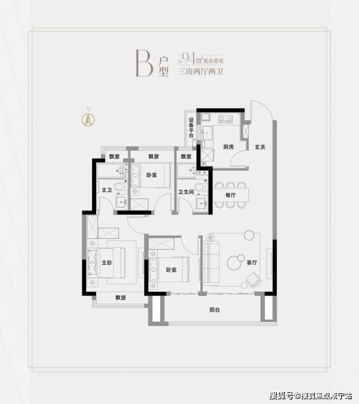 高层建面约94㎡3房2厅2卫