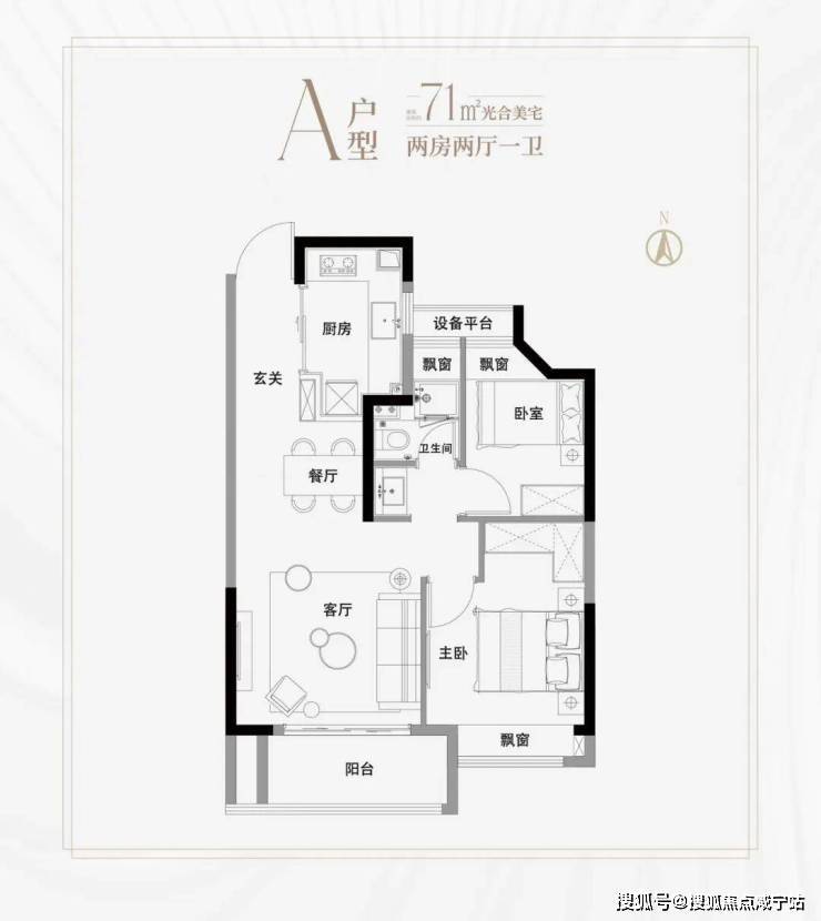 高层建面约71㎡2房2厅1卫