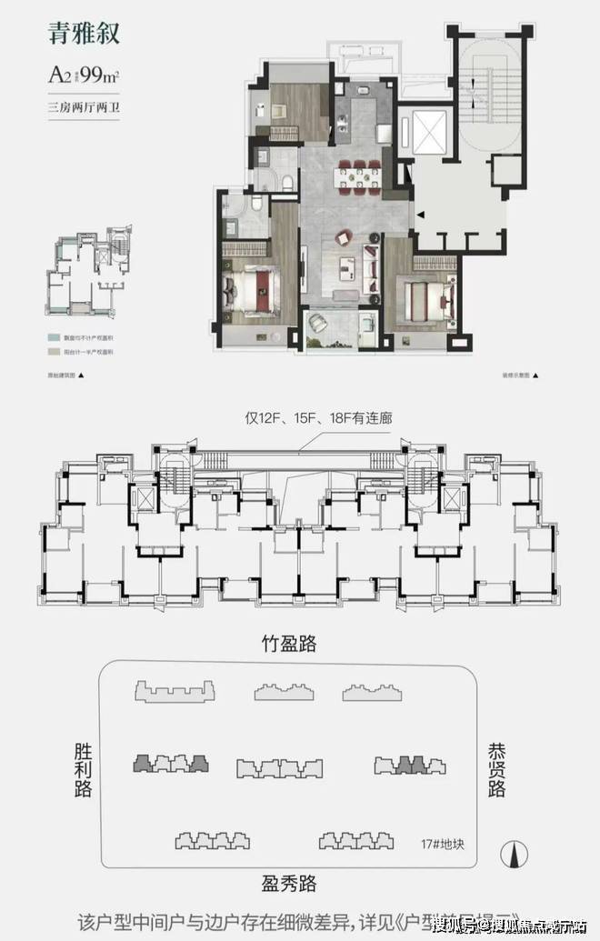 1、约99㎡的户型做到了横厅设计,在市面上非常少见;
