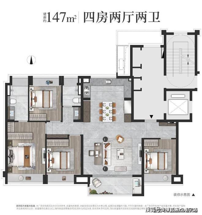 1、四房布局,保障业主的全生命周期需求,理想生活一步到位;