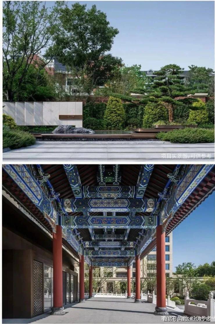 一重仪式门庭以典雅酒店美学为基调,淬炼出独具气宇的门庭;人行归家结合风雨连廊,步履生韵,动静相宜;