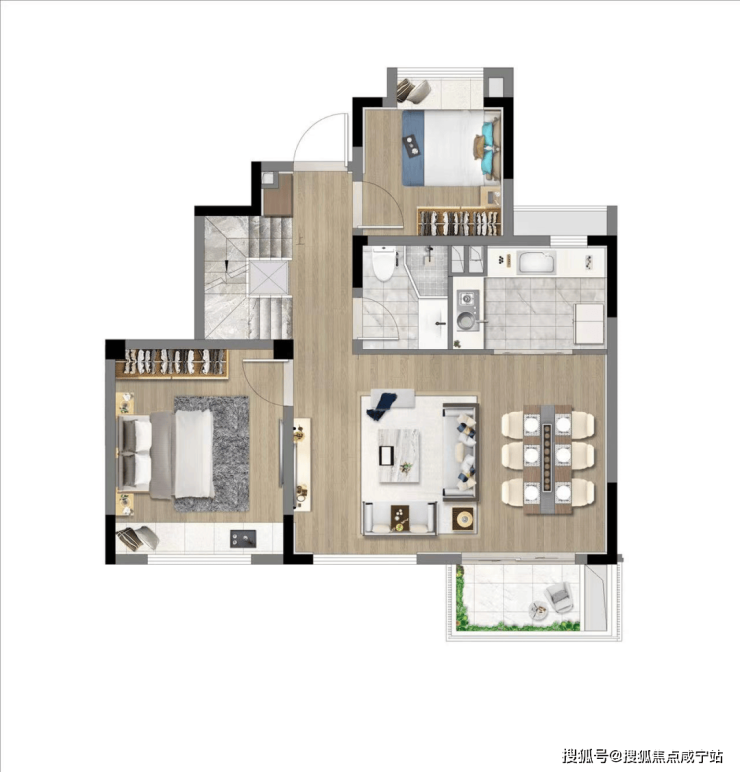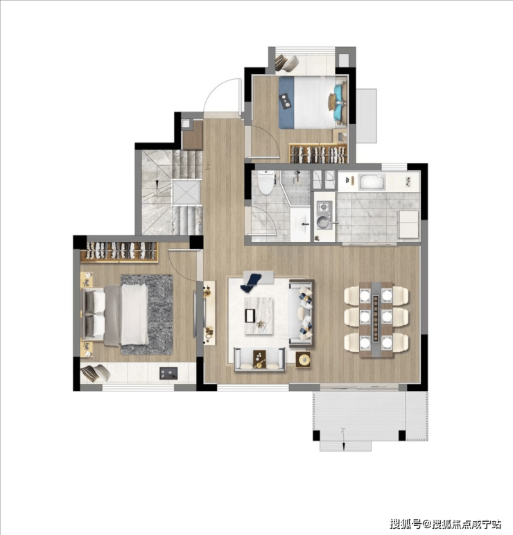 南北通透格局方正,动静分区,三开间朝南,所有卧室均带飘窗,在无形中扩大空间尺度,让阳光和景观全面渗透。植入LDK一体化理念,开放式厨房,打破界限思维,有效利用空间,增加生活的互动性。