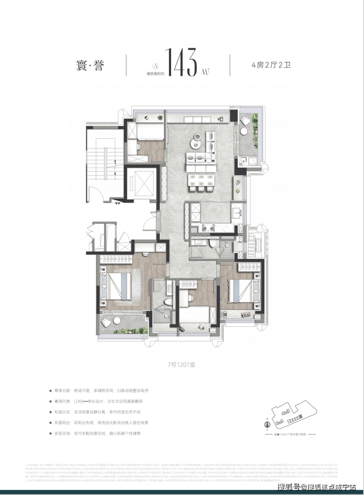 稀缺性高能: 填补内环 150 ㎡以下四房供应空白,准一梯一户 + 约8 ㎡独立电梯厅,同面积段或仅此一家;
