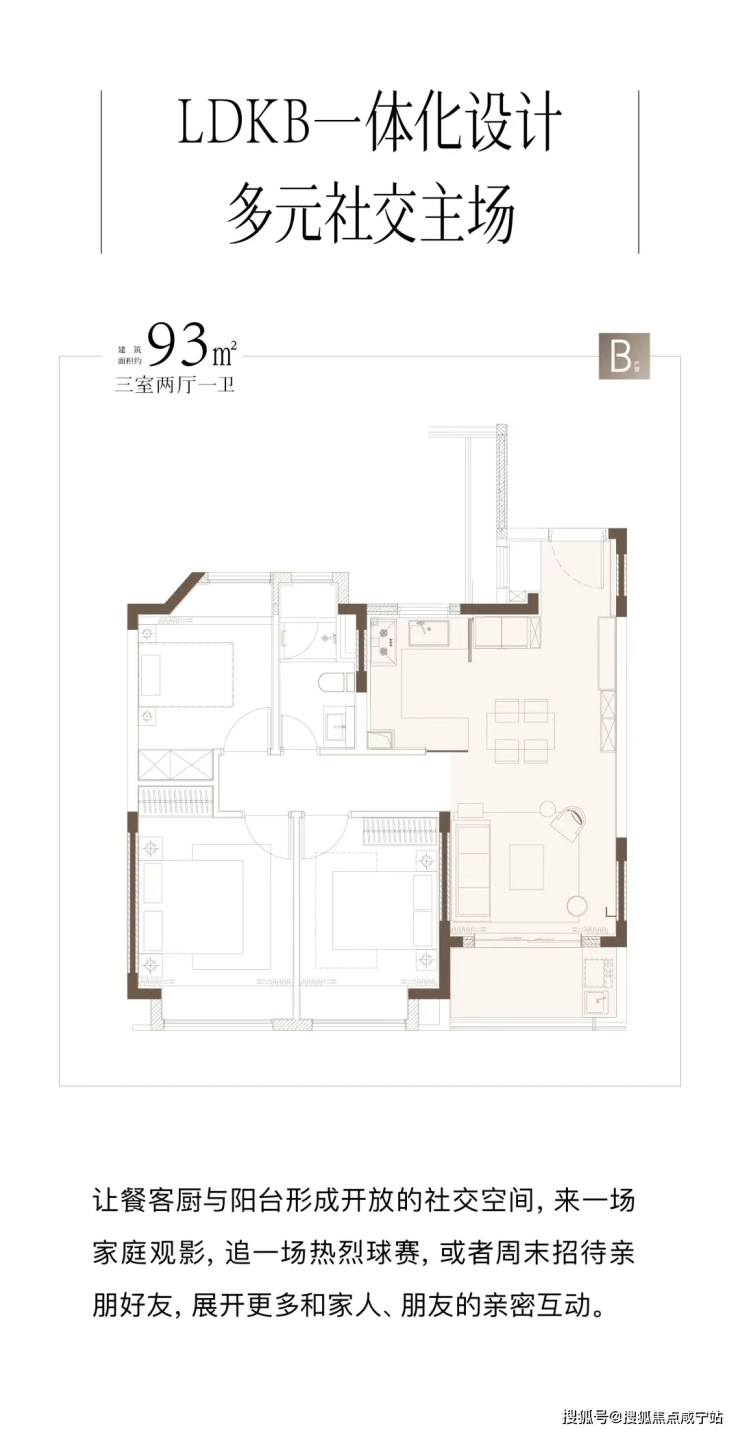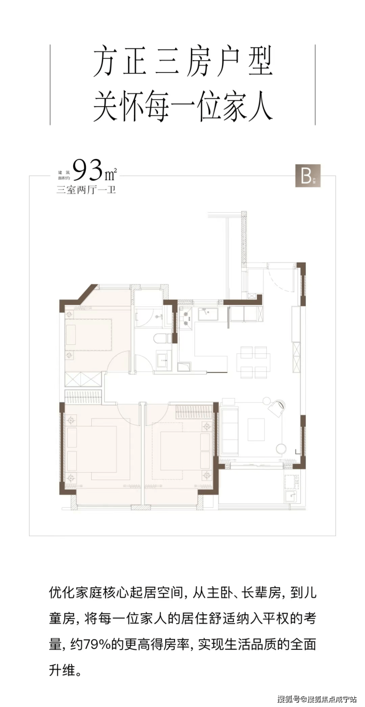 单价5.3万/㎡起(还有优惠哦!)买得房率约80-83%3房,约100㎡户型享约110㎡居住体验!