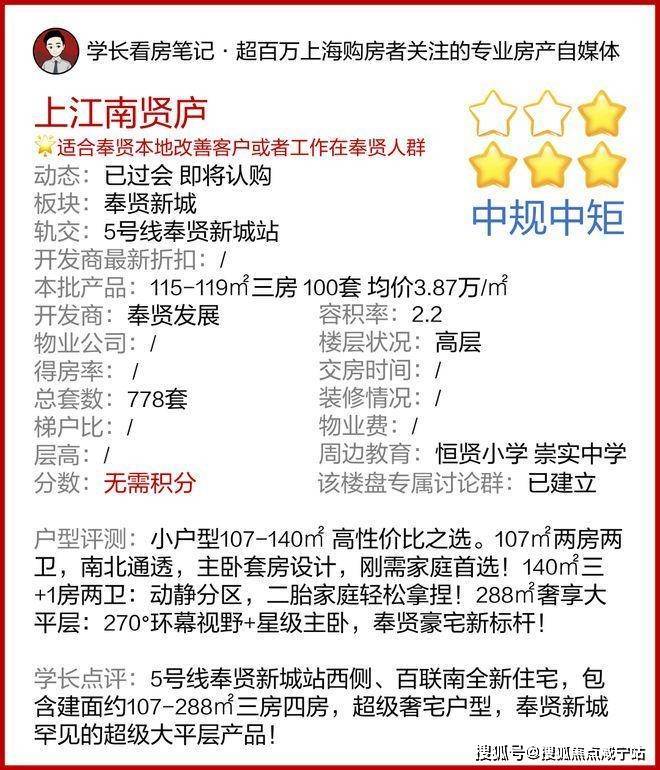 最新消息,奉贤新城「上江南贤庐」已过会,即将认购!推出建面约115-119㎡三房,均价3.87万/㎡!