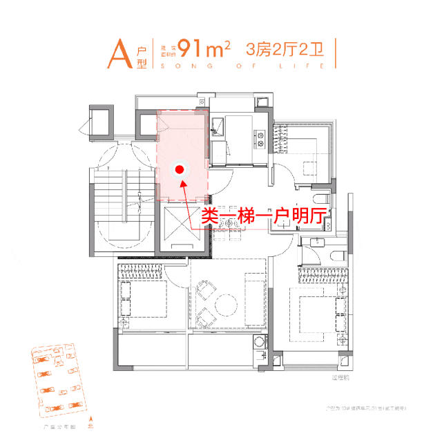 ②、建面约102㎡3/2/2,景观与实用平衡得恰到好处