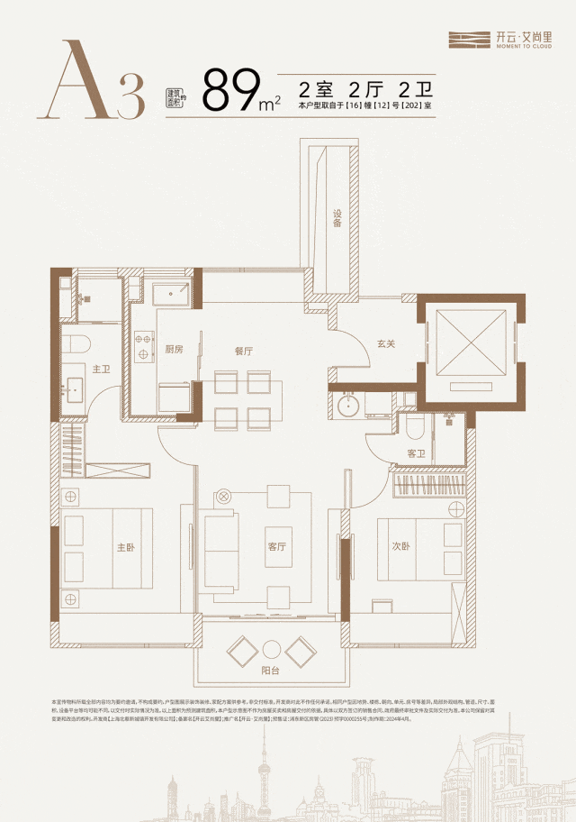 建面约89㎡户型创新性引入独立电梯厅的体验,每户均享有一段独立、私密的电梯前厅空间,面积可达约3㎡。与市场热议的新规产品惊人相似,在有限空间内实现了功能更大化。