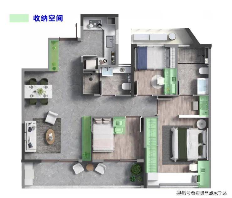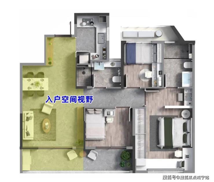 不仅如此,这款户型,在小户型的命门:空间的视野和收纳上,更是做到了天花板级别。